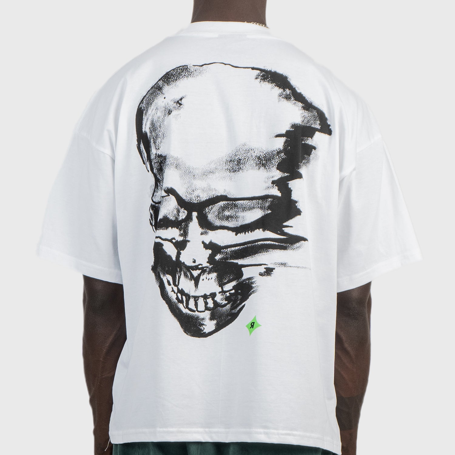 Silueta Boxyfit con caída estructurada para un look urbano y relajado. Detalle de calavera en la parte trasera que aporta carácter y actitud. Confeccionado en algodón de alta calidad para máxima comodidad. Disponible en blanco, negro, beige, verde militar y gris.