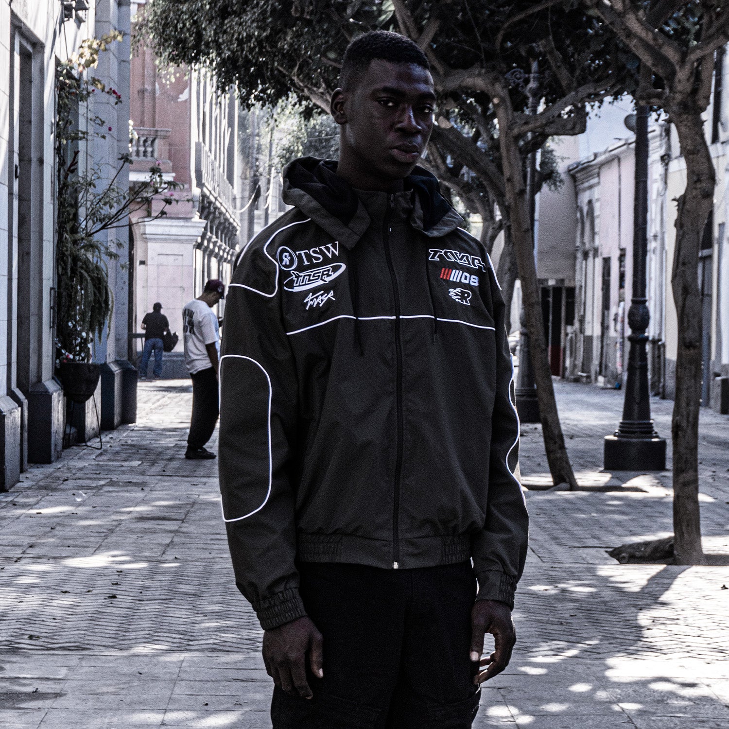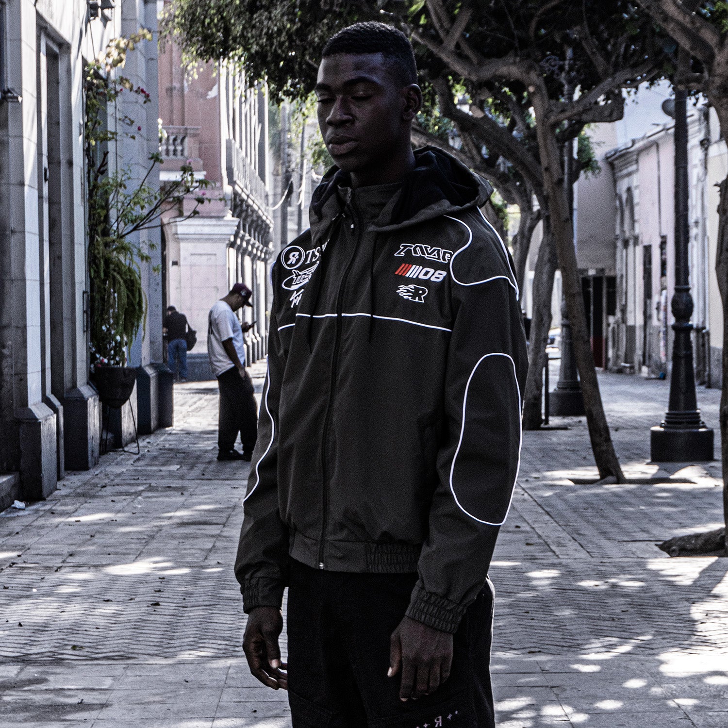 Casaca de corte amplio con estética deportiva y estructura robusta. Incluye diseño en el pecho, detalles tipo venas que recorren hombros, pecho y codos. Una prenda pensada para romper la monotonía sin perder funcionalidad.